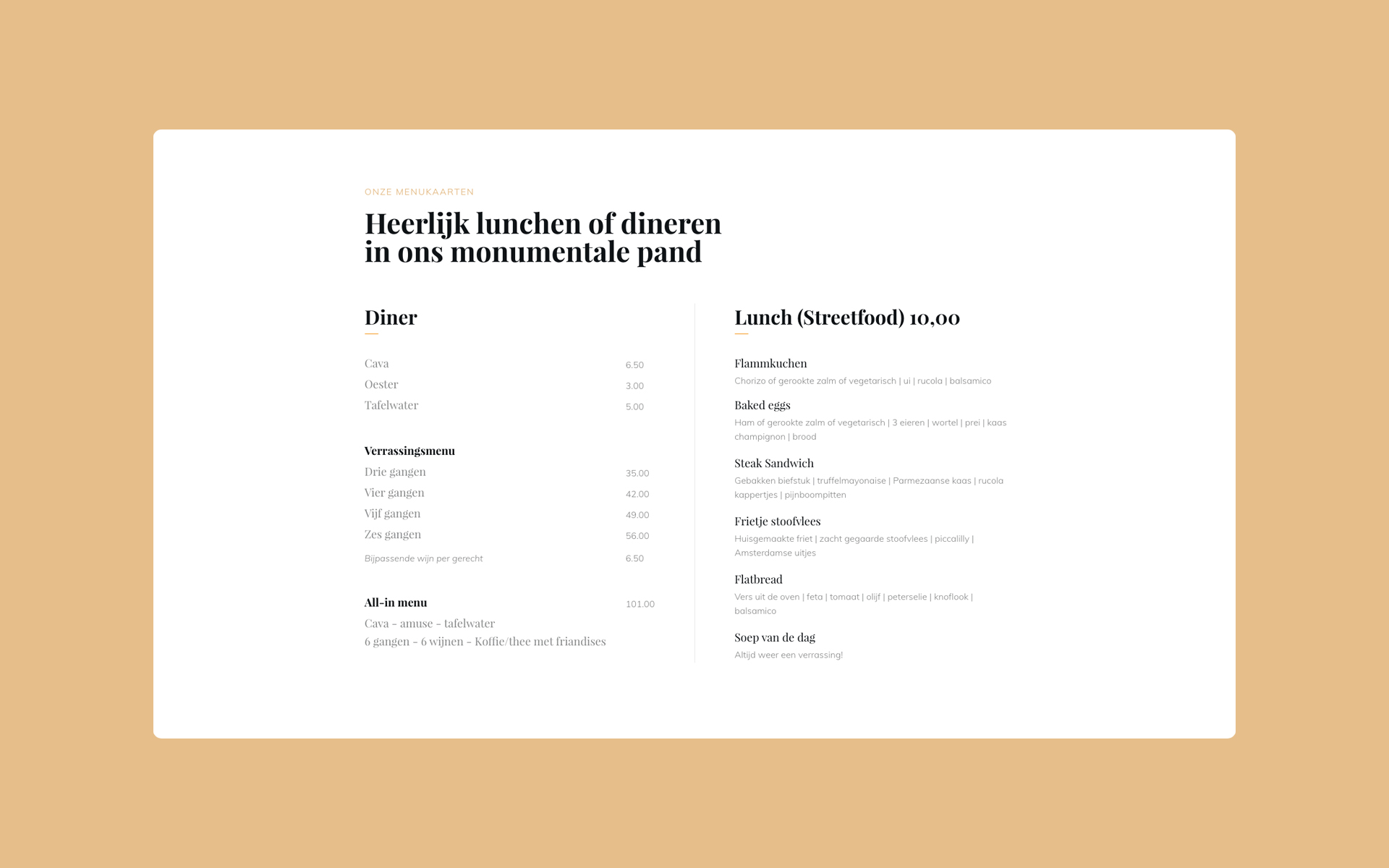 De eigenaren van dit restaurant vroegen mij om een nieuwe website welke snel gerealiseerd diende te worden. Ze wilde graag een one-page website, welke wel duidelijk was. Dit resulteerde in een nieuwe, frisse en moderne doch klassieke website die binnen 2 weken live stond!
