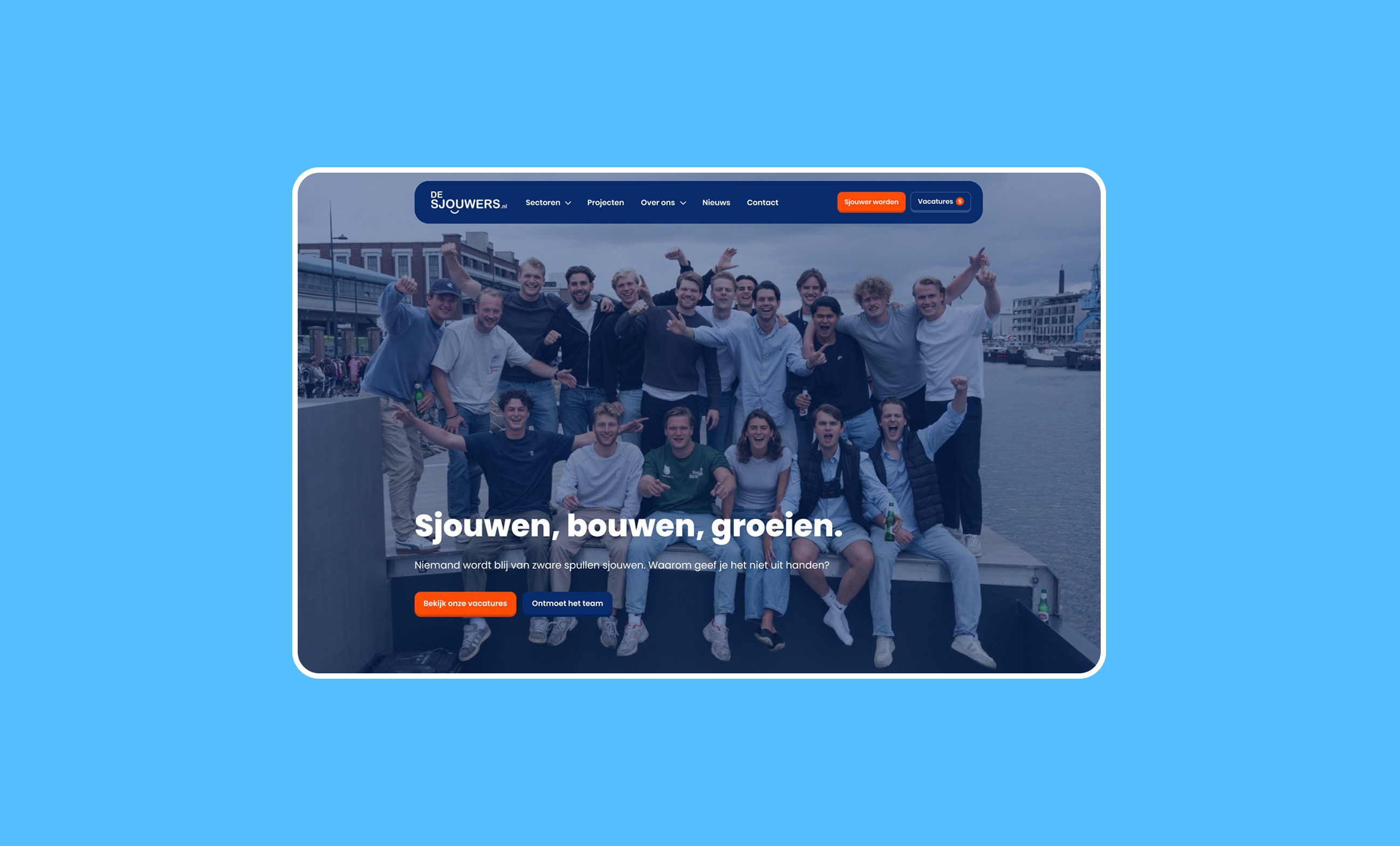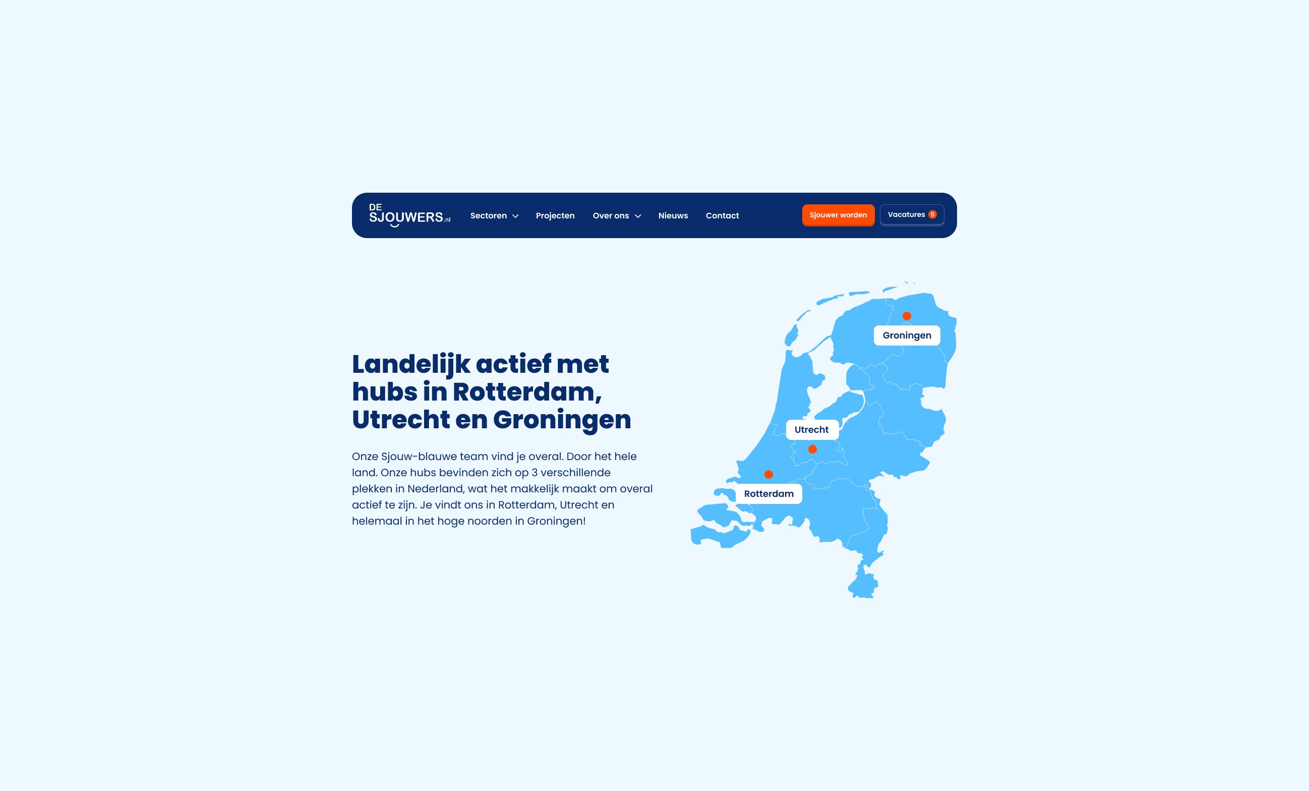 Dus ontwikkelde ik een nieuwe, moderne website die net zo fris en energiek is als hun aanpak. Het resultaat sluit perfect aan bij de identiteit van De Sjouwers, zo zijn ze ook online goed vertegenwoordigd!