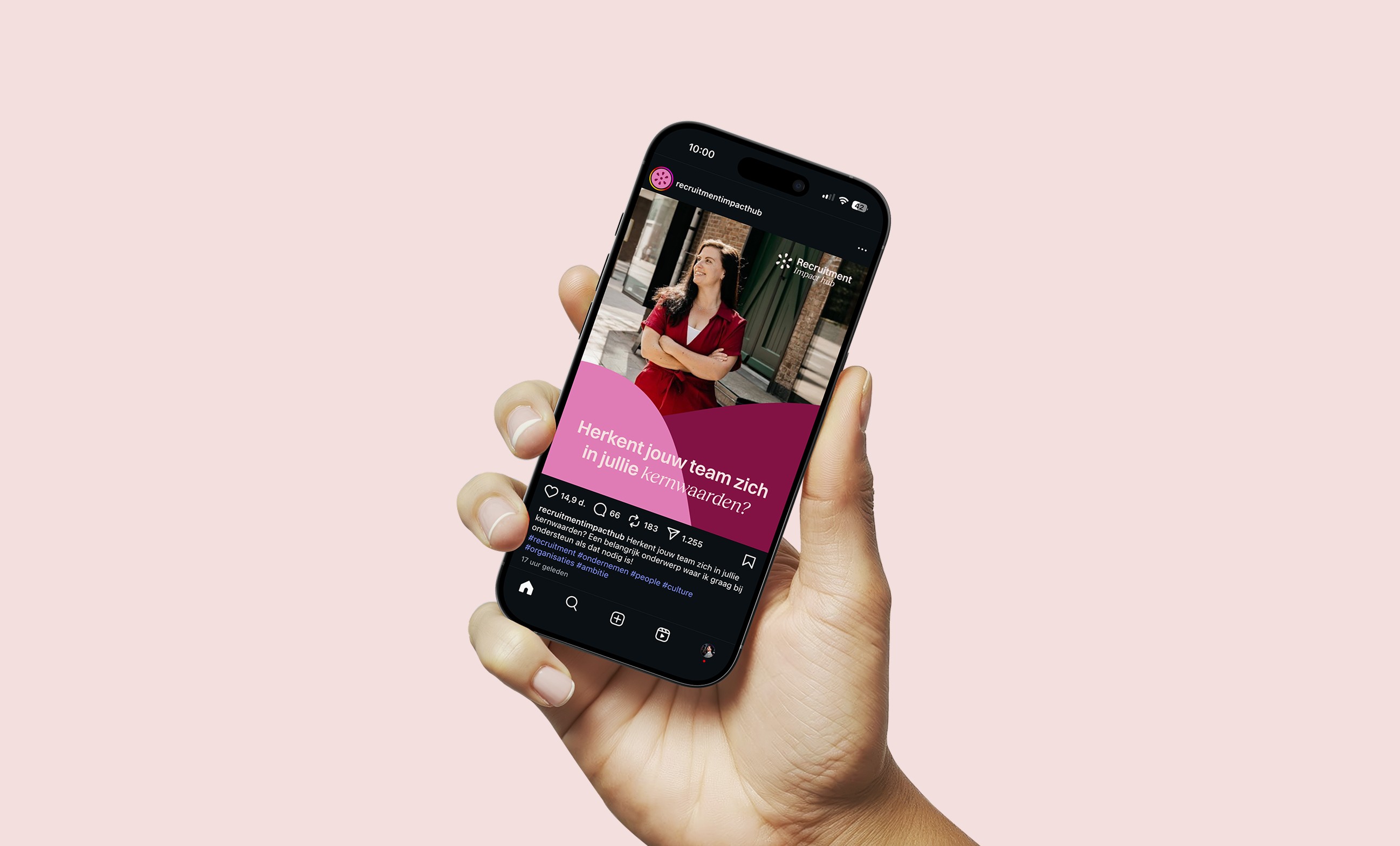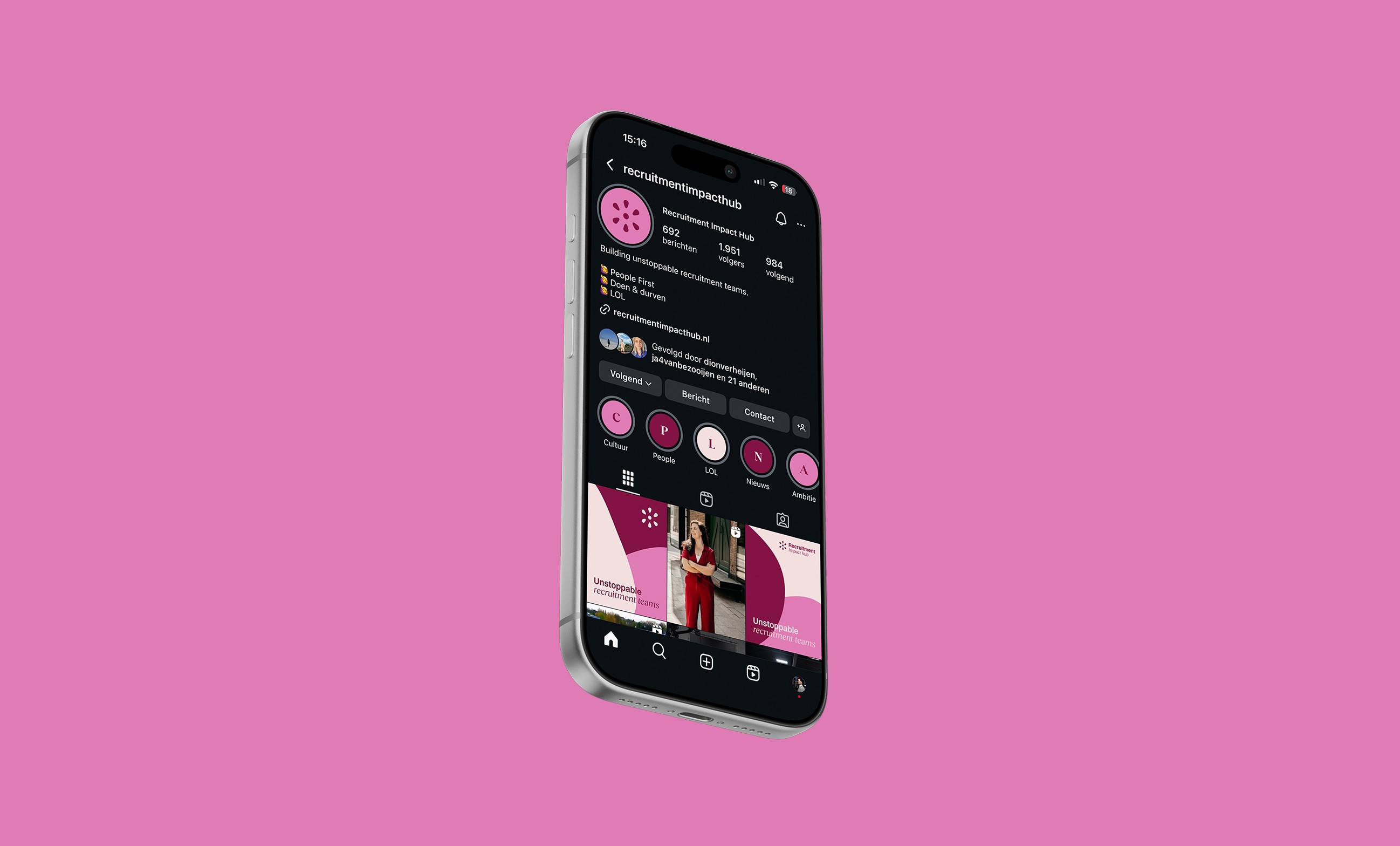 Het beeldmerk is een abstracte combinatie van people, een bloem en een hub. Simpel, maar precies waar de klant naar op zoek was. Een goede basis om door te vertalen naar een stijl die gebruikt kan worden voor social media en andere uitingen.