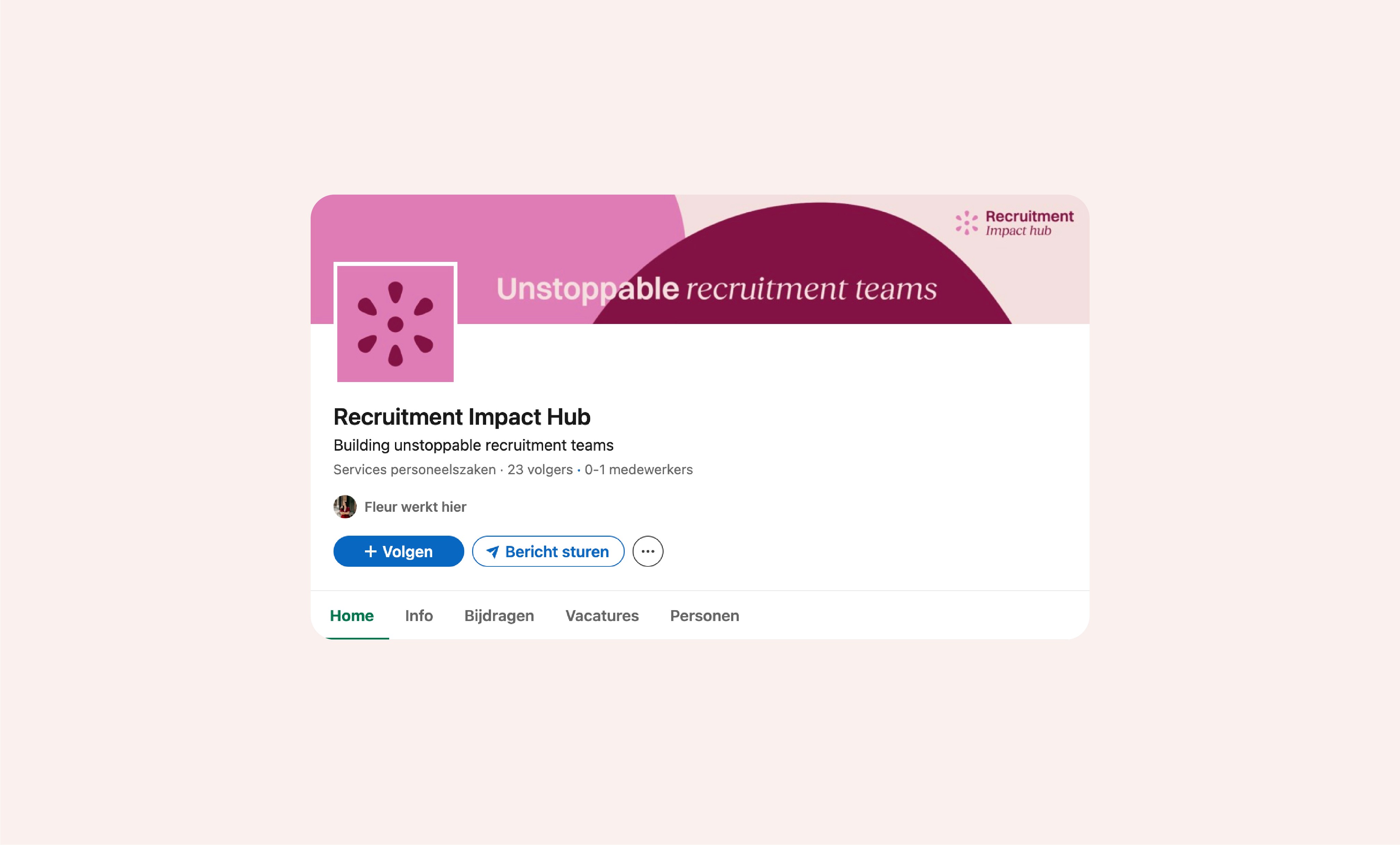 Recruitment Impact Hub had een logo nodig. Het moest passen bij de eigenzinnige manier van recruitment, met een vleugje 'flower power'. De eigenaresse heet immers Fleur.