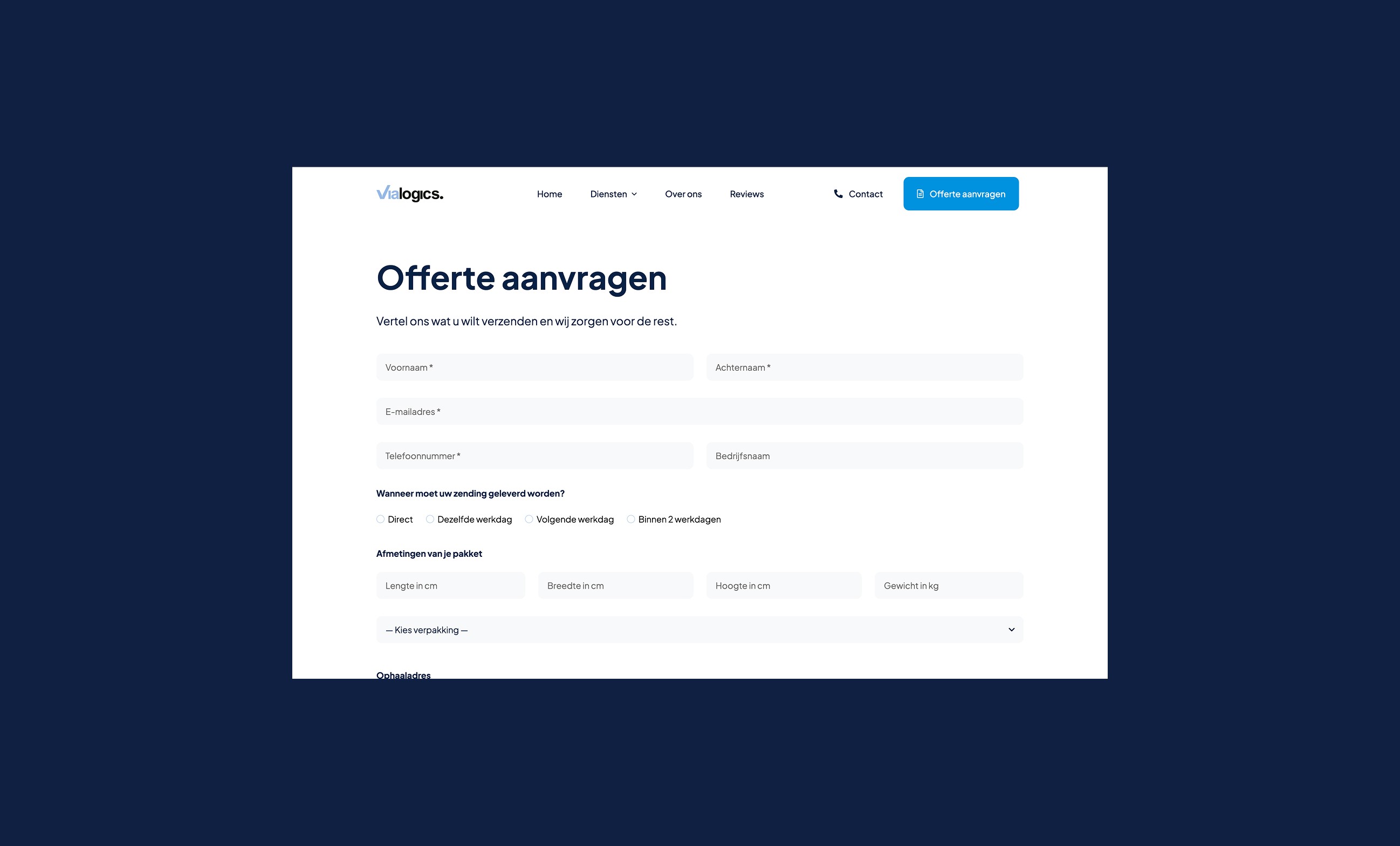De gebruiker ziet in een oogopslag wat Vialogics is en doet. Daarbij is het heel eenvoudig om een offerte aan te vragen, geheel passend bij de wens van de klant.